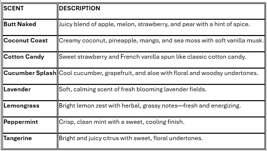 Aloe Barbadensis Leaf, Carbomer, Dimethicone, Triisopropanolamine, Water, Essential Oil, Fragrance Oil
